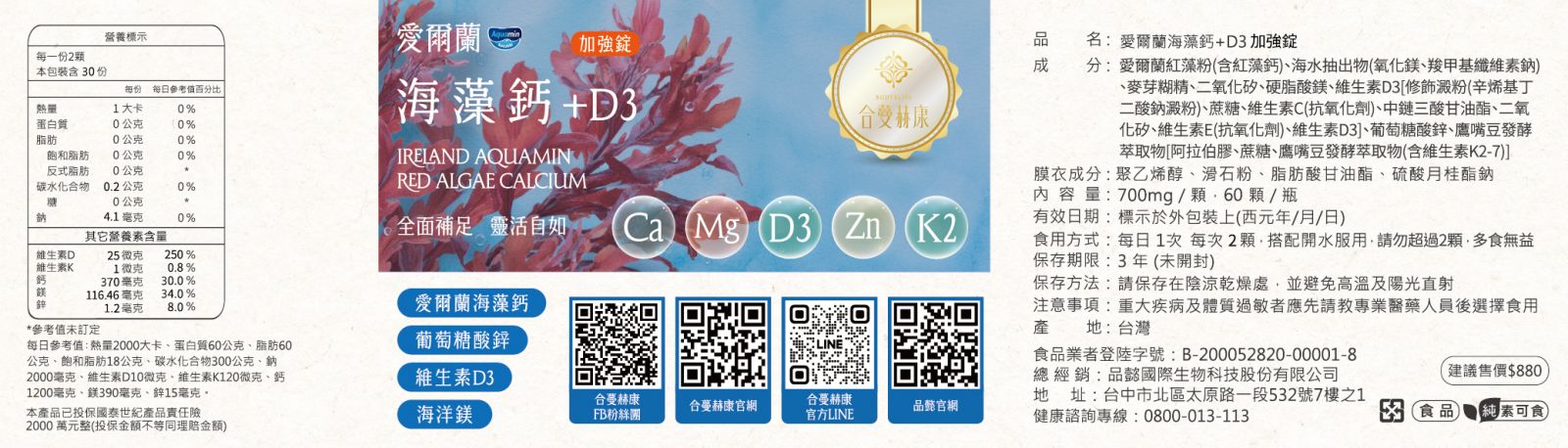 > 愛爾蘭海藻鈣+D3加強錠『全素』